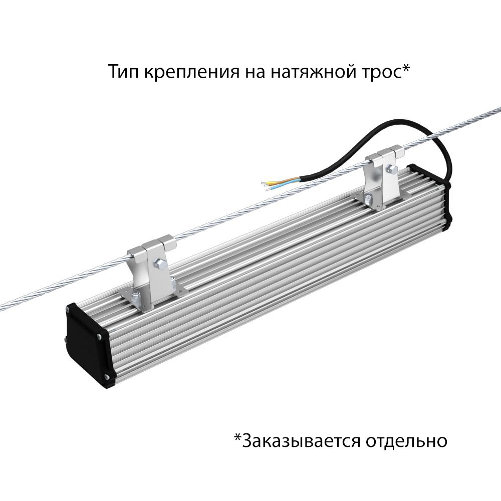 Конструкция светильника предусматривает несколько способов крепления. Возможен монтаж с помощью J-Hook (защёлка), кронштейна, подвеса на трос или винт-петлю. Дополнительно можно организовать линейное соединение до 20 светильников. Это упрощает прокладку электросети и установку на больших площадях.
